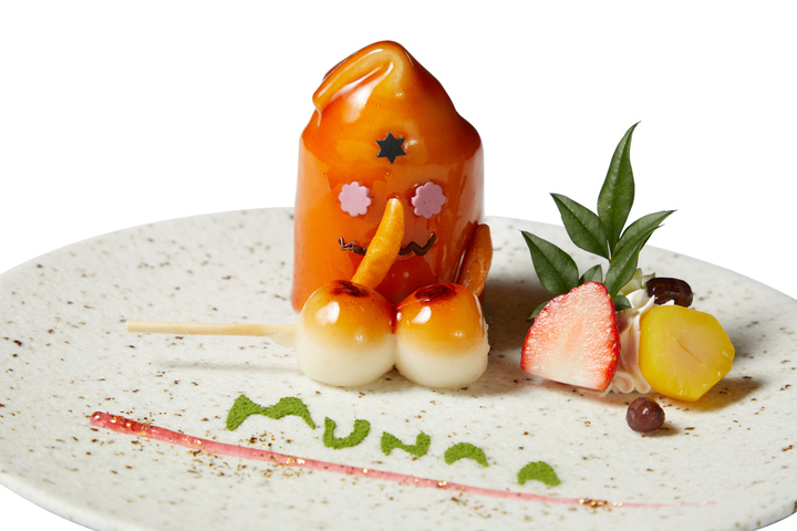 『いなり寿司になるっちゃ!』ペニュがどの 味(⼀味、柚⼦、⻘じそ)になるかは、お楽し みに。 その他にも、鯛の上品なゼメキス茶漬け、顔 紫になるかも蕎⻨、地獄の⾚湯や呪いのモン ブーランヌなどフォトジェニックなフードや スイーツ 10品をご⽤意しました。