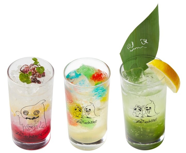 桜舞う『うまうま桜⼊りしゅわしゅわちゃん』や笹になったペニュが可愛らしい『しゅっわしゅっわわ茶々』、和 をコンセプトにしたフォトジェニックな『是眼にゅー』(MENU)。 その他、ゼメキス家の特製抹茶ラテや⽣姜ソーダ、カラフルライチソーダなど、全 6 種をご⽤意しました。テイクアウト限定オリジナルスリーブ付きのホットコーヒー(銀座)と、ほうじ茶(京都)も販売いたします。