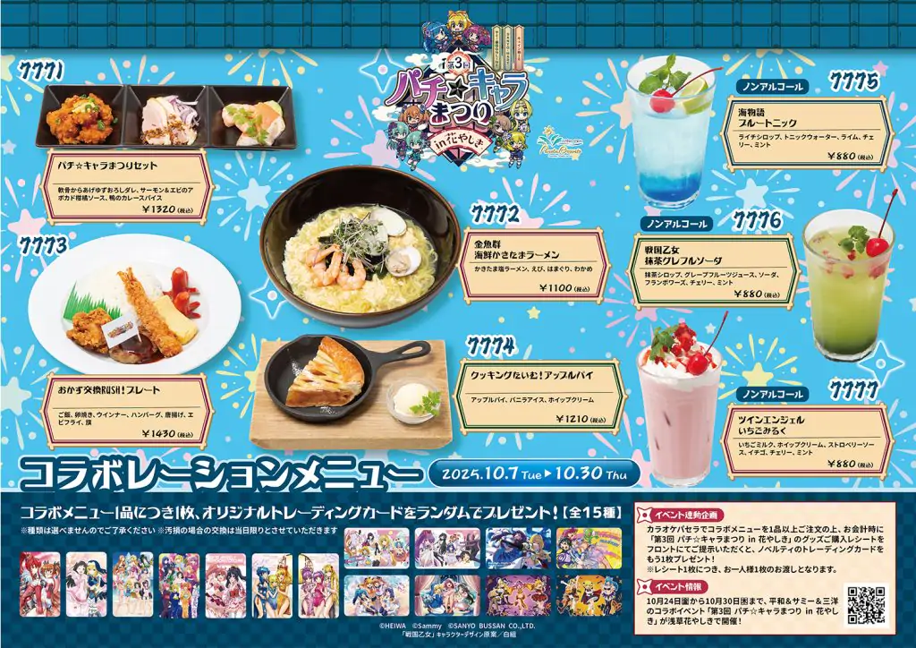 3社を代表する人気シリーズ「戦国乙女」「ツインエンジェル」「海物語」 をモチーフとしたコラボメニューを展開。