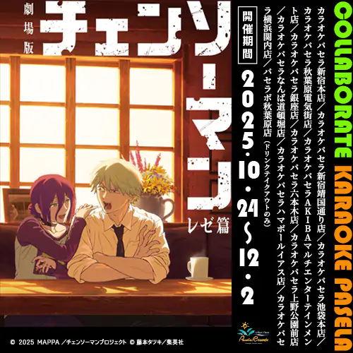 劇場版『チェンソーマン レゼ篇』の大ヒットを記念し、カラオケパセラでのコラボ開催が決定いたしました。