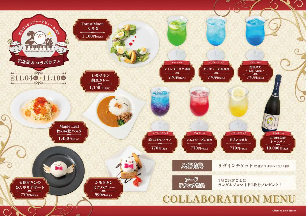 衣装展はレベルアップライブやオリジナルファンタジーコンサートなど懐かしいものから、最新衣装まで展示いたします。併設カフェではパセラ×シモツキンの懐かしいオリジナルメニュー復刻や新フード、ファンタジー作品イメージのドリンクなどお楽しみいただけます。ハニトン×シモツキンのここだけの限定グッズ販売や、ご来場・ご注文特典も!