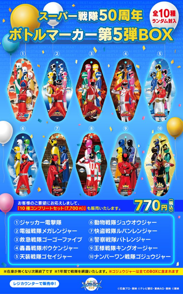 スーパー戦隊50周年を記念したボトルマーカーの第5弾を販売いたしました。
