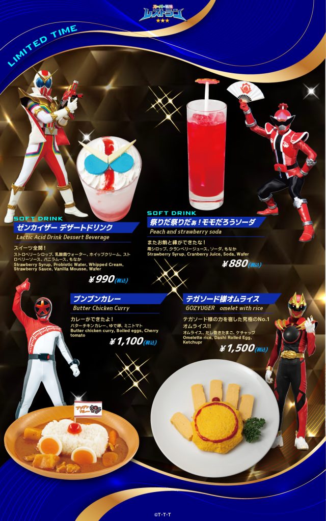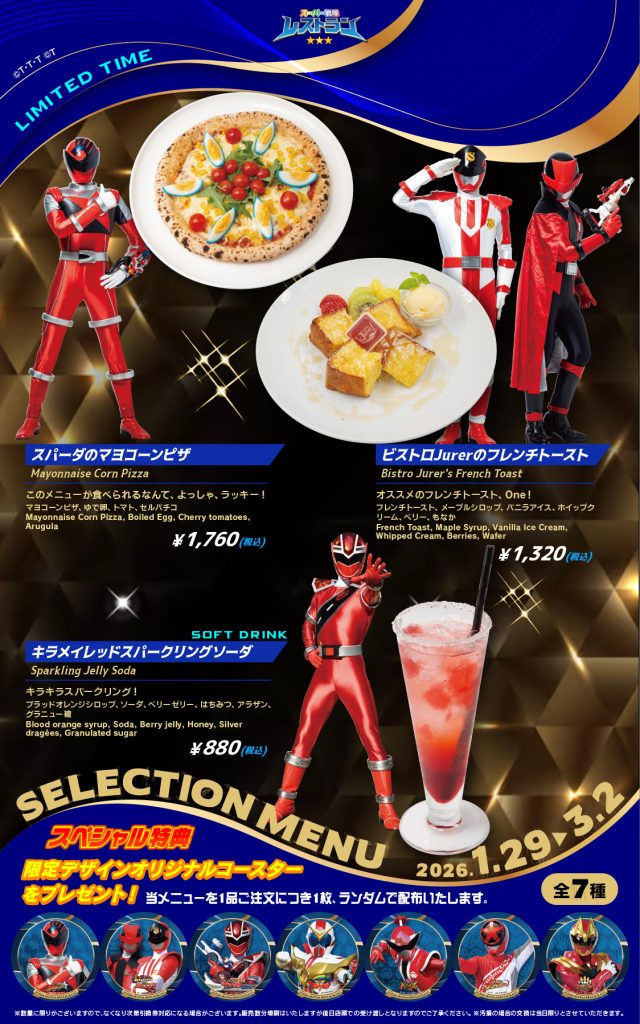 スーパー戦隊レストランだけでなく、カラオケパセラ池袋本店、カラオケパセラ横浜関内店ではカラオケルームでも、そしてグレースバリ横浜関内店のコラボカフェでも今回の「セレクションメニュー」をお楽しみいただけます