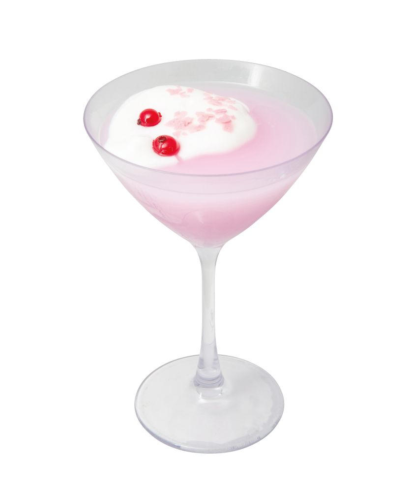 淡いピンク色とエスプーマに飾ったレッドカラントとフィアンティーヌで目と髪色を表現しました。