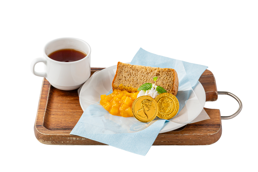 マッシュが好きな紅茶をイメージして、アールグレイのシフォンケーキとホットティーのセットです。