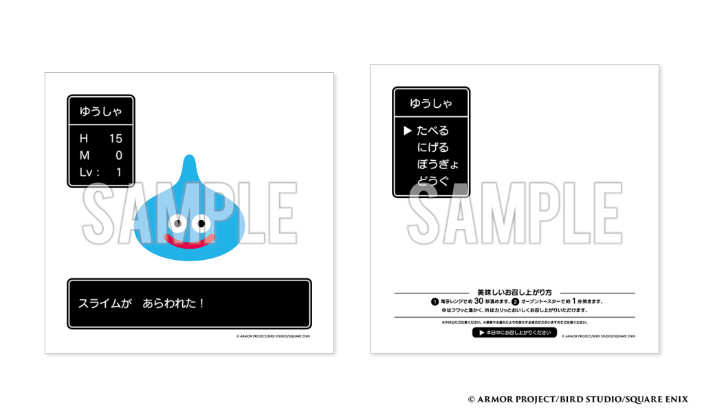 ドラゴンクエストのキャラクター「スライム」とファイナルファンタジーのキャラクター「チョコボ」を使用した特製たい焼きを、それぞれオリジナルデザインの袋で販売いたします。